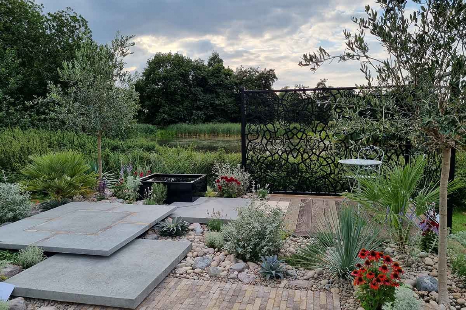 Inspired by the dry garden planting of the late Beth Chatto, the design demonstrates how it is possible to boost the biodiversity of the smallest of spaces with a spectacular display of drought tolerant planting, carefully selected for their flowering longevity and seasonal interest.
