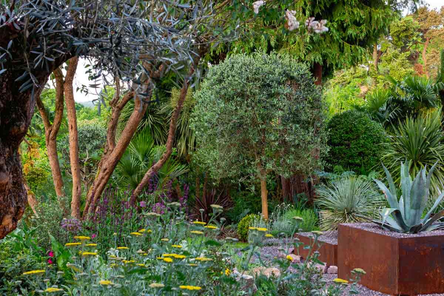 - A larger Mediterranean scheme which would run through most of the terraced planters, forming the core of the design. Plants such as Chamaerops humilis 'Vulcano', Cistus 'Alan Fradd', Pittosporum tobira nanum, Yucca filamentosa 'Adam's Needle' and Olearia haastii were used. Supporting this would be citrus trees in pots, being positioned on the dining terrace and under the portico to trap the heavenly scent of the flowers during those warm summer evenings. Again because of the individual micro-climate here, the citrus trees flourish, even through our cold winters.